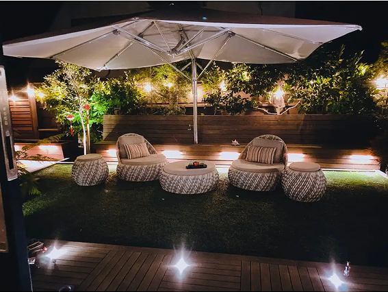 4.特定区域的灯光更是必不可少,不同的灯光,可以为区域晕染出不同的浪漫色彩:花园边缘、泳池、入口、阶梯、植物氛围,灯光与特定区域搭配,形成一幅静谧浪漫的画面