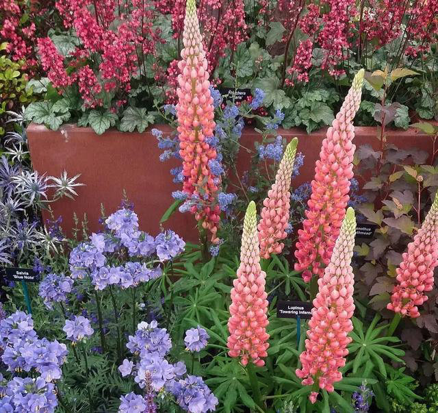 还要使花境内花卉的色调与四周环境相协调,什么颜色的墙搭配什么颜色的花。