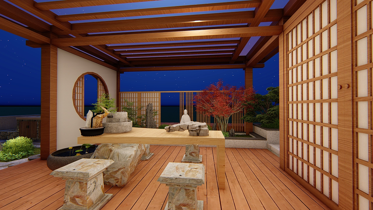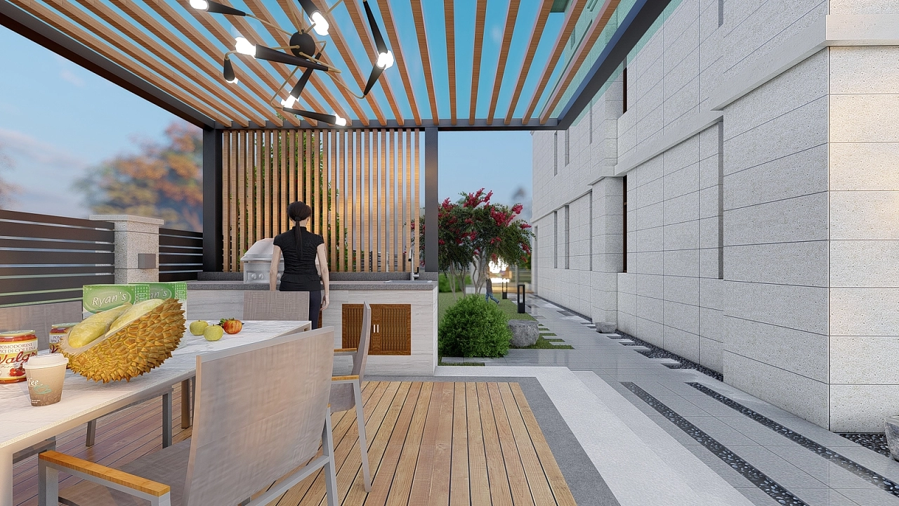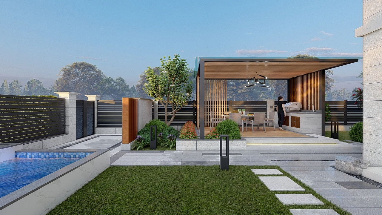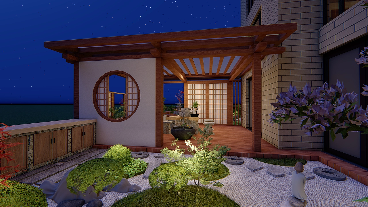 整个室外显得格外的干净利落,一般都是室内的布置较多。