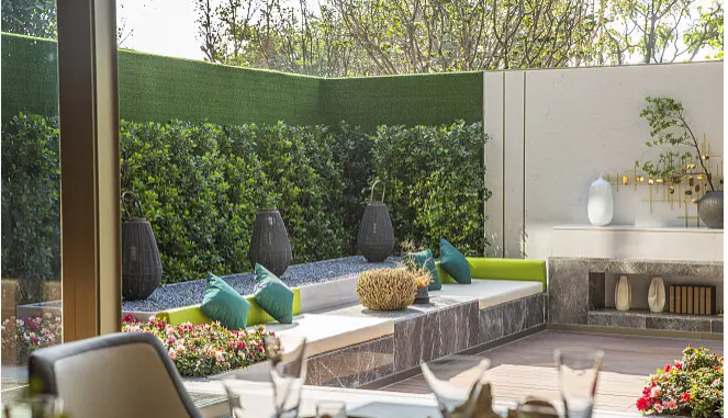 软装景观的布置与庭院的主题统一,要有空间上的距离感与层次感,达到错落有致的效果。利用室外空间打造一个日常娱乐场所,这样在家也能感受到这种热闹的氛围。