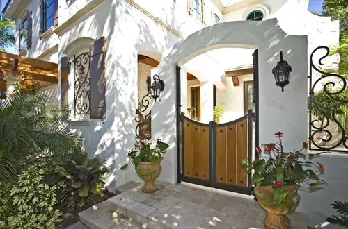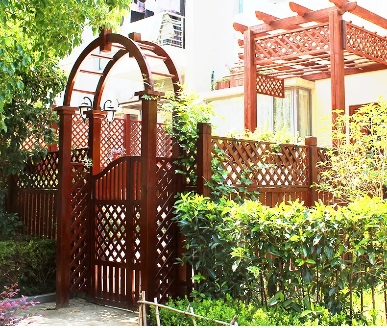庭院设计中,在庭院景观构造中,大门主要的功能是提供入园的途径,维持庭院私密性。同时也是一种装饰,一种焦点,给人深刻的视觉印象。