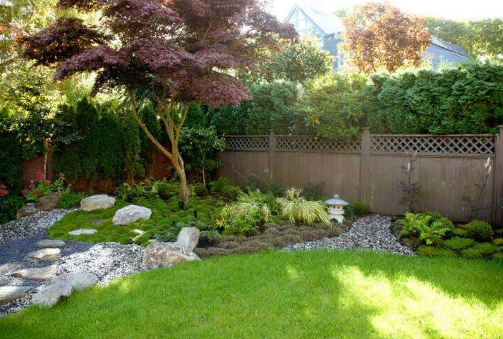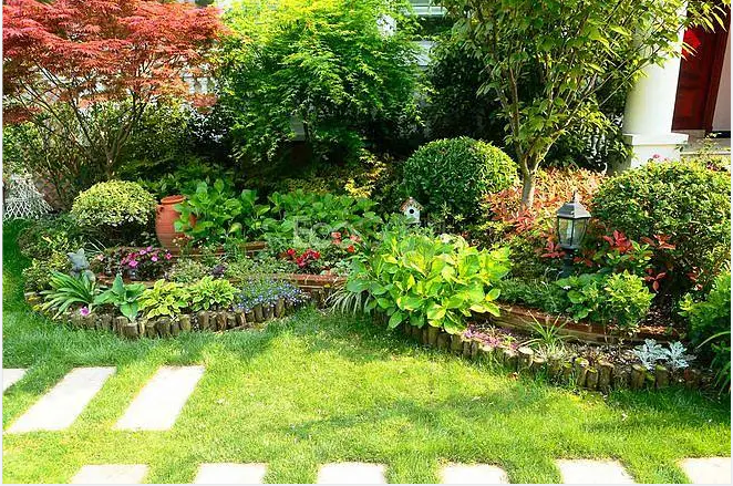 庭院植物应采取常落相间的方式,高大落叶乔木应种植于空旷处或者大门附近,同时也可以采用常绿与落叶间植的形式