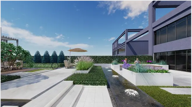 现在庭院绿化大多以常绿植物为主,选用生长技术较快,树形伸展,分支点较高的落叶乔木榉树,可有选择“彩色植物”与常绿植物相搭配,增加绿植品种的多样性又使得庭院绿化色彩更加丰富