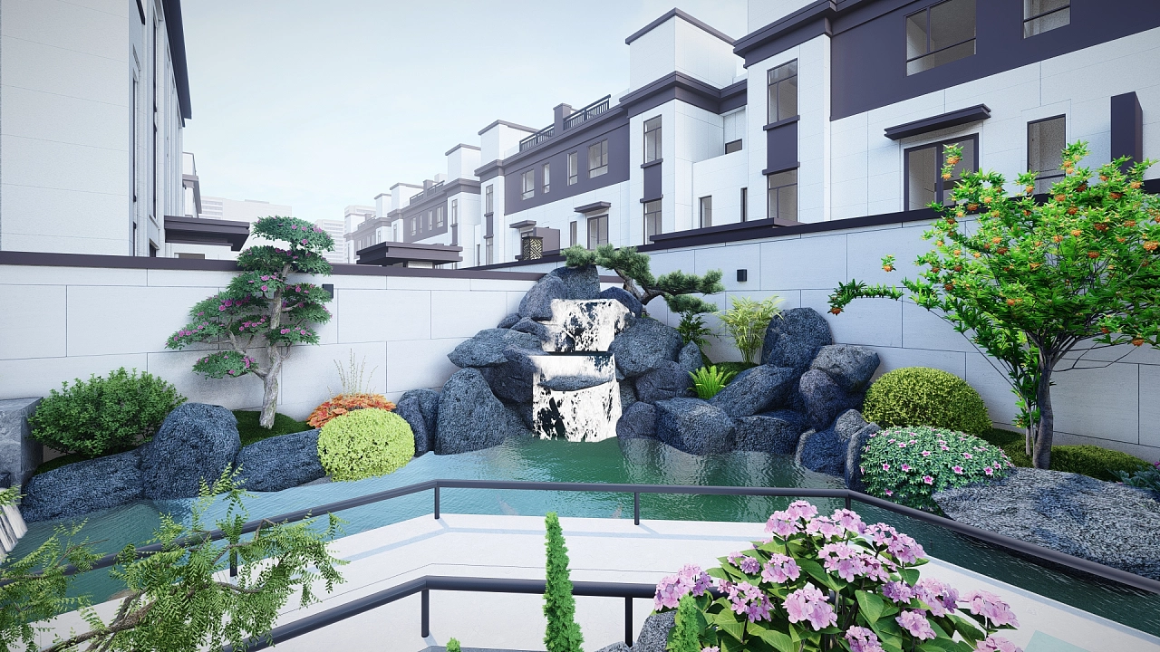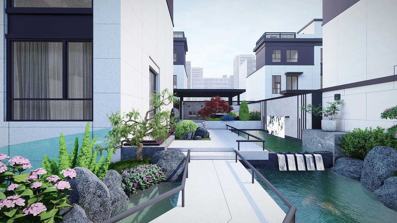 静静地欣赏水的动与静,有水的庭院,便是人间天堂。庭院两侧建一个水池,能够给予庭院安静的气氛,心灵也会变得清新宁静