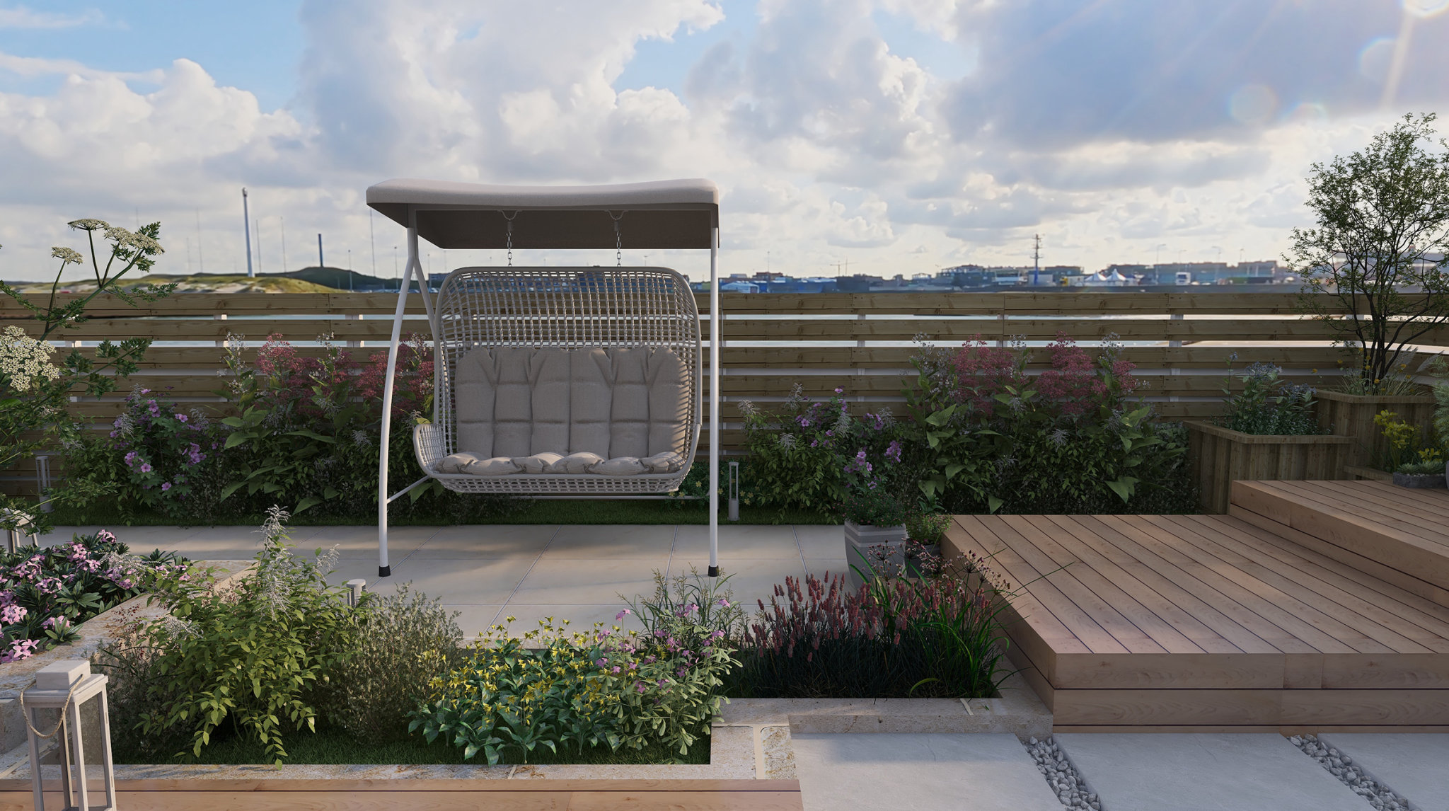 设计舒适的休闲区:在庭院中设置一个舒适的休闲区,可以让人们在其中放松身心。可以使用户外家具、遮阳伞和舒适的座椅来打造一个宜人的休闲区。