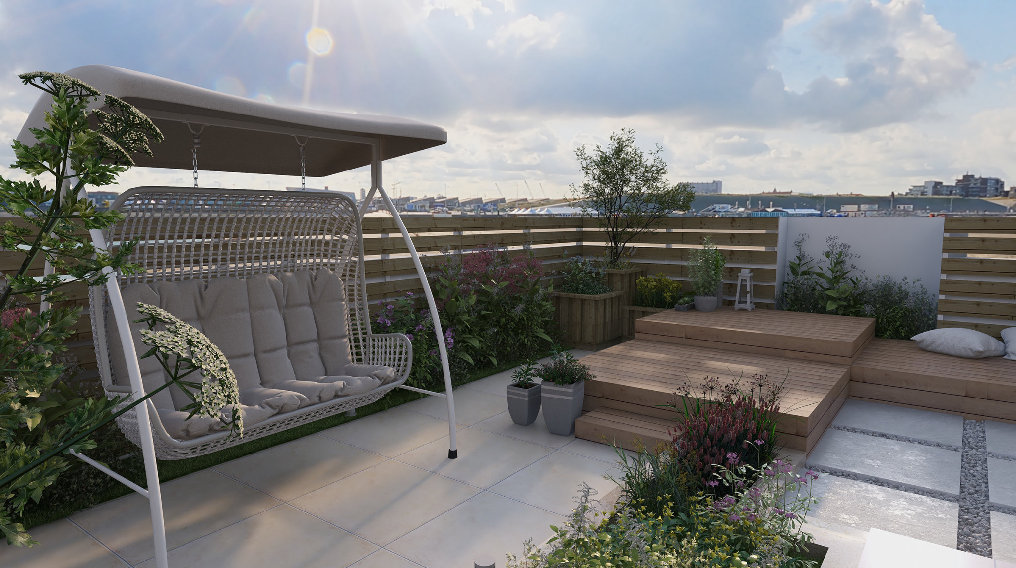 园林景观设计在美化人们的日常生活中起着重要的作用,因此有足够的空间,根据人们的日常需要,在院子里的椅子可以休息和聊天,可以设计秋千,给人们的娱乐施加压力。
