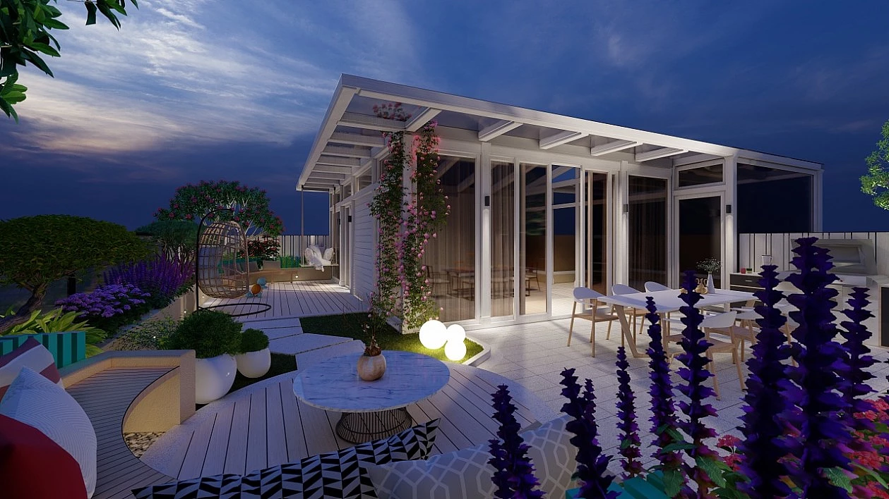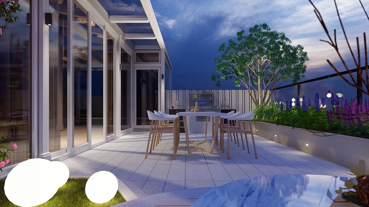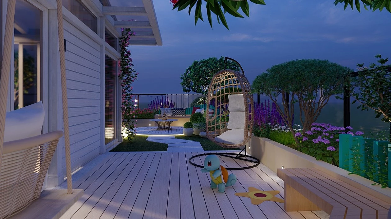 阳台花园设计,需针对其特点,考虑防晒、防风、防水、轻质化、阻根、虫害这些重点要素。