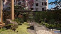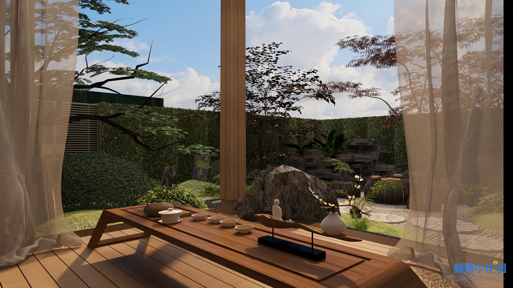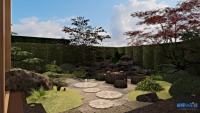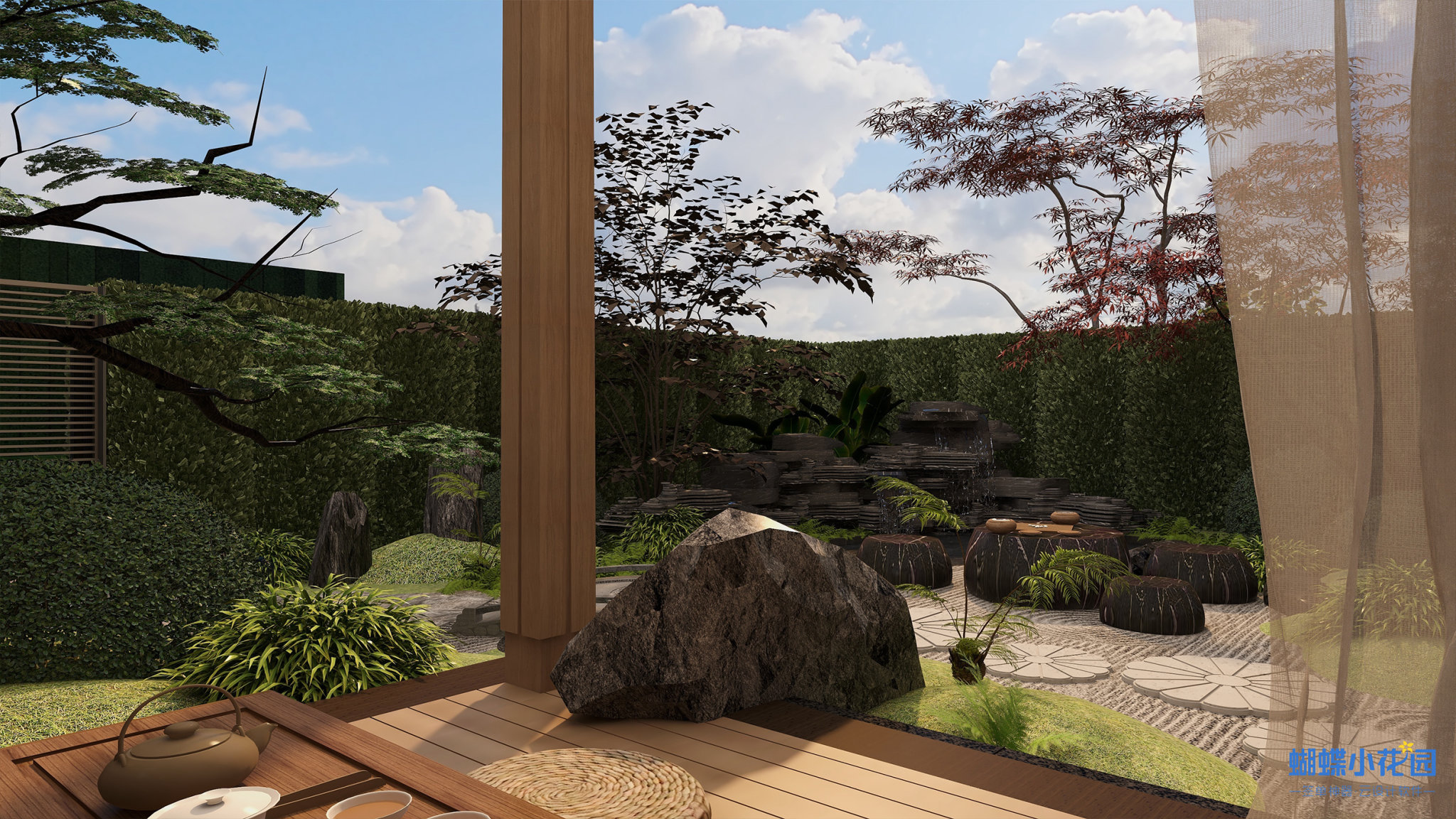 这个中式风格的别墅花园融合了传统的文化元素,注重自然与人文的和谐。在设计中,独具匠心的假山被布置在花园中,既起到装点景观的作用,也寓意山水之间的禅意。汀步沿着花园铺设,引人徜徉其中,感受静谧的景色。茶桌和蒲团被巧妙地安排在花园的一隅,为主人提供一个静谧的品茶休憩之地。植物的选择以传统的中式园林植物为主,如盆景、竹子等,以打造一个充满禅意和古典氛围的庭院。整体设计以平衡、和谐为目标,创造出一个传统中式园林的精致空间。