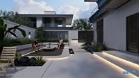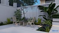 这个极简主义的现代风格花园以简洁、纯粹的设计为特色。休憩区域是露天的,没有多余的装饰,只有一些极简风格的户外家具,强调线条和功能。植物选择以少而精的原则,偏向于低维护、形态简单的植被,打造清新宜人的氛围。园中铺设的小径和露天地面采用单色或中性色调,呼应整体极简风格。整个花园的设计注重空间的留白和几何形状的运用,以营造宁静、简约而现代的户外休憩场所。