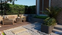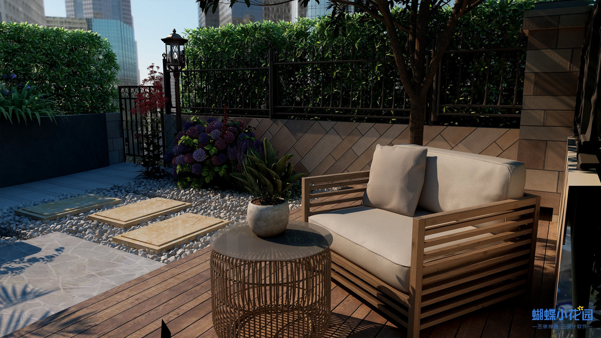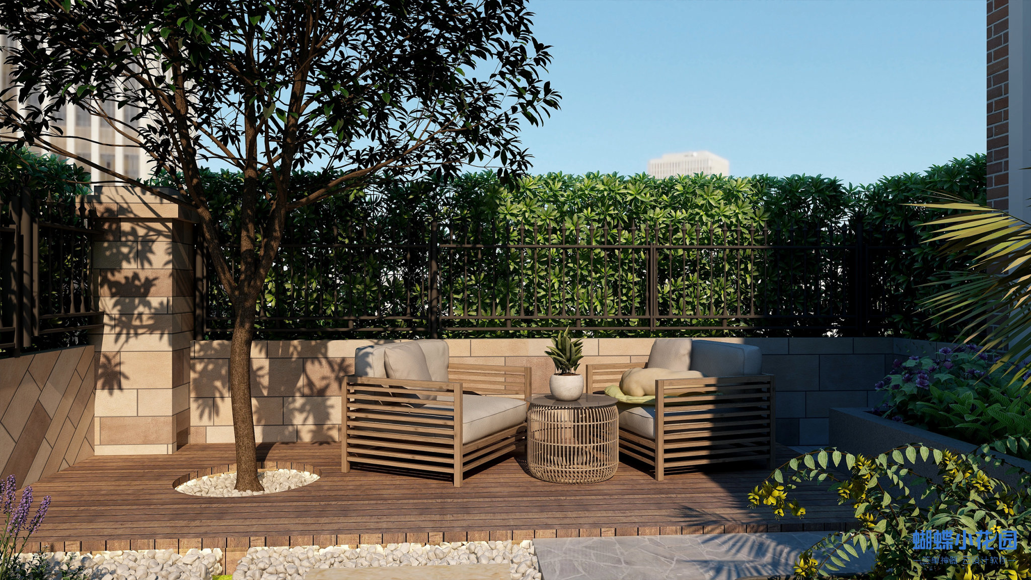 这小面积的别墅花园以巧妙布局为特色,中心区域设置了一个精致的木制平台。平台上摆放着舒适的户外休闲沙发,为居住者提供了一个惬意的休息场所。植物选择上注重小面积的精致,可能包括一些盆栽、攀爬植物或者低矮的花卉,以营造绿意盎然的氛围。 在有限的空间内,巧妙运用景观石或者小型装饰物,使整个花园显得更加精致而有层次感。围绕木制平台的边缘,可以设置简约而美观的园艺灯,增强夜晚的浪漫氛围。
